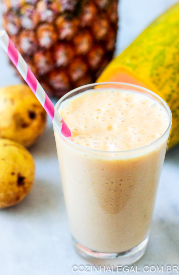 Bata todos os ingredientes no liquidificador (ou com mixer) até obter uma mistura homogênea. Beber gelado é uma boa dica. Para quem quer emagrecer, a receita pode substituir uma das refeições principais.